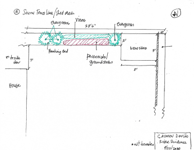 Do you need just a little help visualizing what goes where – or how to layout a garden bed or what to remove or relocate? A hand sketch with notes layered on top of your photos gives you the confidence to jump in and start the project on your own.